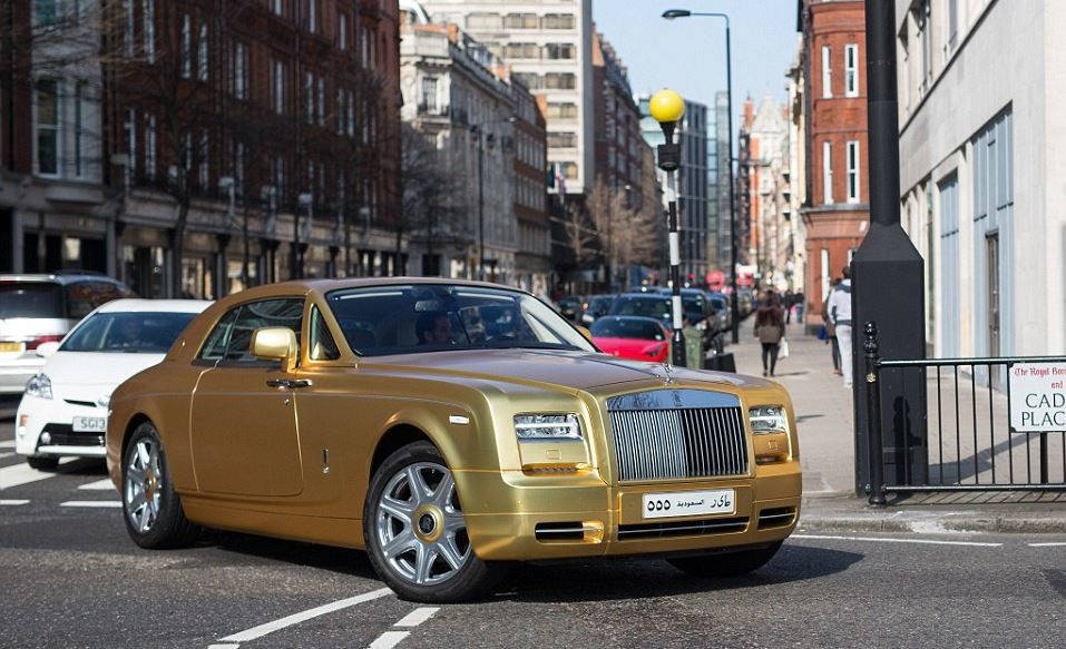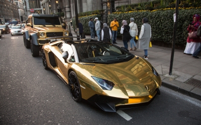 (صور وفيديو) ملياردير سعودي يذهل لندن بأسطول سيارات مذهبة
