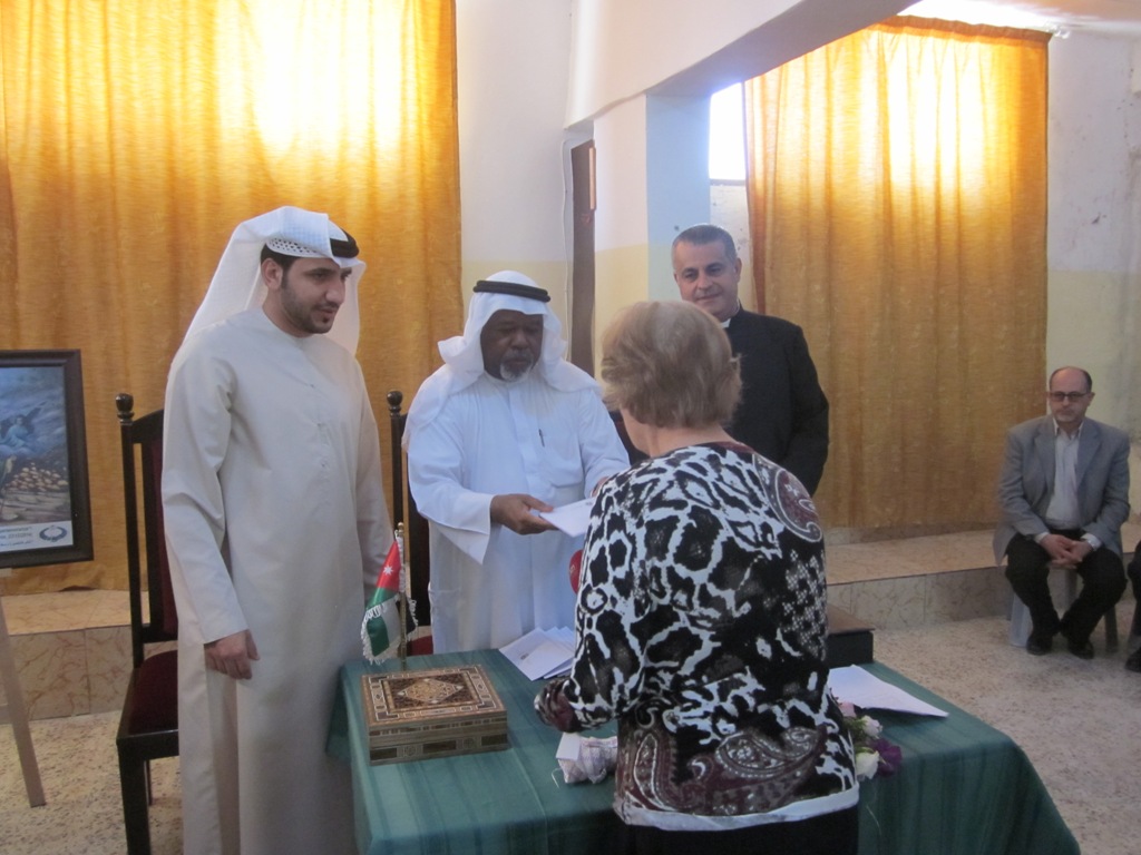 ![]() سلّمت سفارة دولة الإمارات العربية المتحدة في عمّان يوم الخميس الموافق 19/5/2016 في كنسية ناعور الدعم المقدم من الهلال الاحمر الاماراتي لتسديد ايجارات مساكن اسر عراقية مسيحية لاجئة . وقام سعادة بلال ربيع البدور سفير الدولة بتسليم مبالغ ايجارات السكن على 11 عائلة عراقية مسيحية لاجئة في الأردن بحاجة للدعم وذلك في قاعات كنيسة ناعور جنوب غرب عمّان، بحضور الأب رفعت بدر – مدير المركز الكاثوليكي للدراسات والإعلام وراعي كنسية ناعور. والقى سفير دولة الإمارات العربية المتحدة بعمّان كلمة بهذه المناسبة، أكد فيها أن هذه المساعدات التي تقدمها الهلال الأحمر الإماراتي تأتي من باب الواجب الإنساني تجاه الأشقاء العرب، مؤكداً بأن الإمارات موجودة دوماً وفي أي مكان خدمة للإنسانية والبشرية ، كما شكر السفير المملكة الأردنية الهاشمية قيادةً وحكومةً وشعباً لتحمل اعباء استضافة الاشقاء اللاجئين من مختلف الدول المحيطة، مؤكداً بأن الإمارات تحرص على مساندة المملكة في هذا المجال. من جانه قدم الأب رفعت بدر وعدد من ممثلي اللاجئين المسيحيين في الأردن جزيل الشكر والتقدير الى دولة الإمارات العربية المتحدة على تقديم هذه المساعدات ، مثمنين التطور والإنجازات في دولة الإمارات العربية المتحدة وفي الوقت ذاته التعايش الديني والإنساني والذي يلمسه المواطنين والوافدين على حد سواء والنابع عن توجيهات القيادة الحكيمة والشعب الاصيل والمحب والقوانين العصرية المتقدمة. يشار بأن الهلال الاحمر الاماراتي قام بتجديد الدعم المادي لتسديد قيمة الإيجار السنوي لمدة عام آخر وبقيمة 74.117 الف دولار بعدما تم تسديد إيجارات المساكن للعام الماضي 2015.