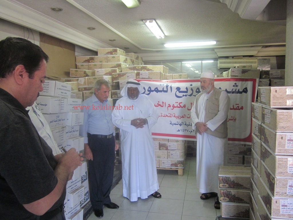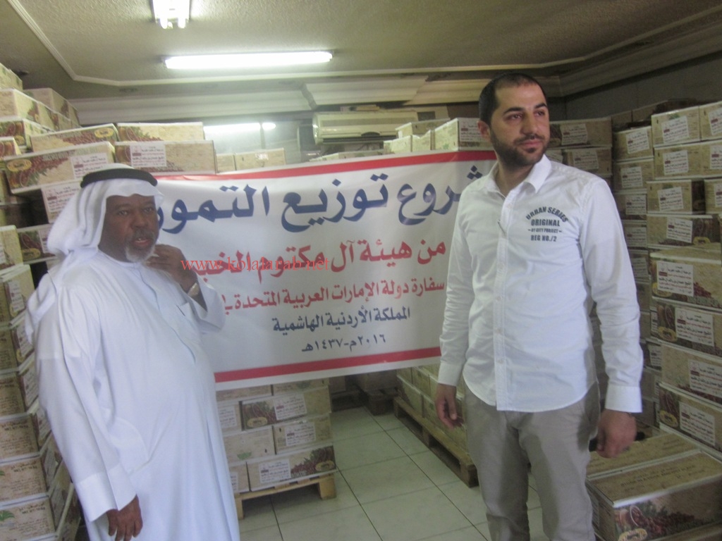 سفارة الامارات بالاردن تشرف على مشروع توزيع التمور المقدم من الهلال الاحمر وهيئة آل مكتوم الخيرية