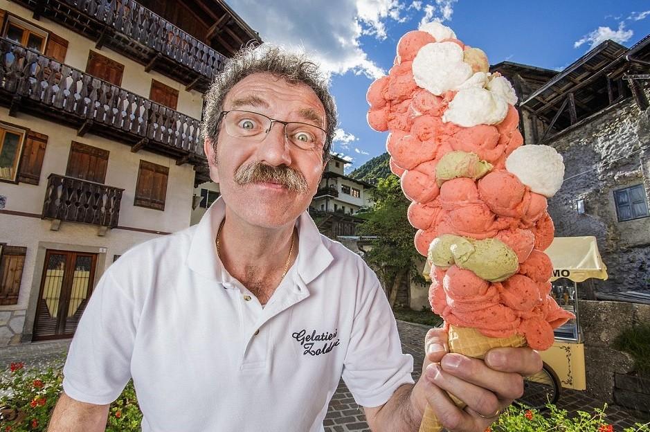 أطول مخروط آيس كريم في العالم في إيطاليا احتوى 121 كرة آيس كريم متراكمة