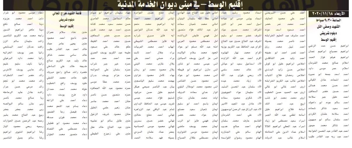 ![]() وكالة كل العرب الاخبارية دعا ديوان الخدمة المدنية بالتنسيق مع وزارة الصحة، عددا من حملة شهادة البكالوريوس في تخصص الطب العام وحملة شهادة البكالوريوس في تخصص التمريض، وحملة شهادة دبلوم كلية المجتمع الشامل في تخصص التمريض لإشغال الوظائف الطبية والصحية على مستوى الاقاليم الثلاث.