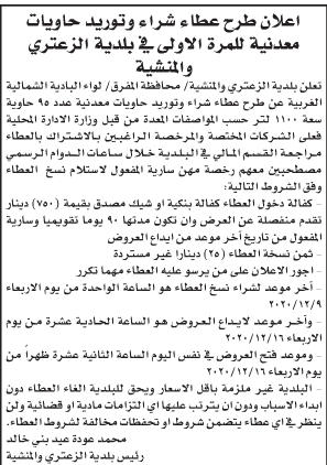 مطلوب شراء و توريد حاويات معدنية