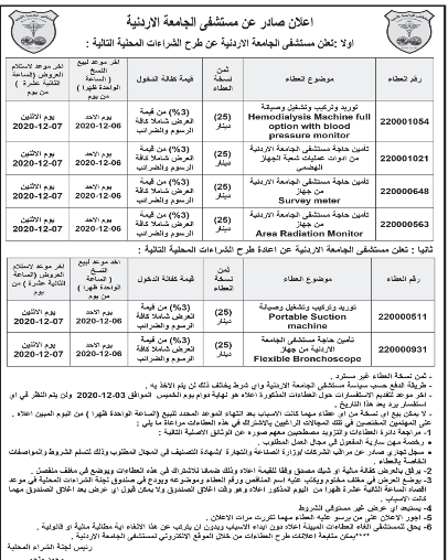 عطاءات صادرة عن مستشفى الجامعة الاردنية