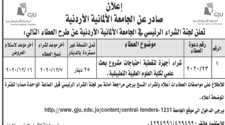 عطاء صادر عن الجامعة الالمانية