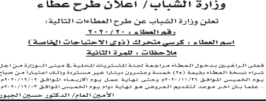 مطلوب شراء كرسي متحرك لوزارة الشباب