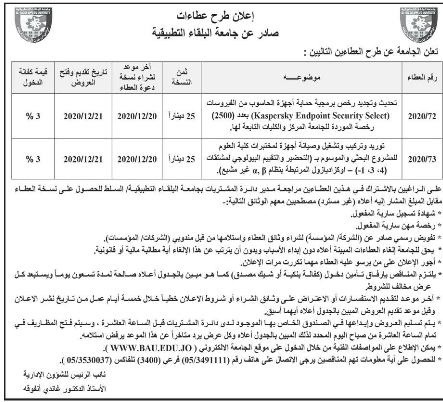 عطاءات صادرة عن جامعة البلقاء التطبيقية