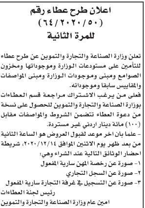 مطلوب التأمين على ممتلكات وزارة الصناعة والتجارة والتموين
