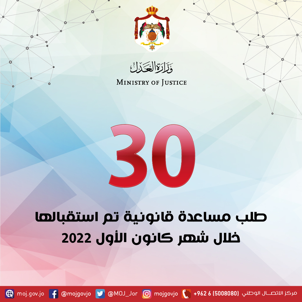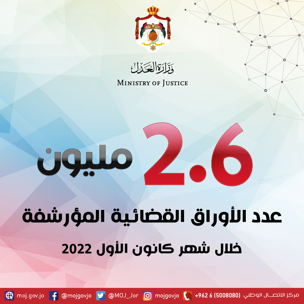 وأشارت الى أن عدد الأوراق القضائية المؤرشفة بلغ 2.6 مليون ورقة لنفس الفترة، فيما استقبلت نحو 30 طلب مساعدة قانونية.