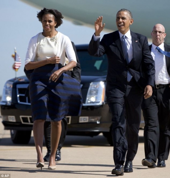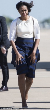 صور ..أوباما ينقذ ميشيل من موقف محرج بسبب "تنورتها"