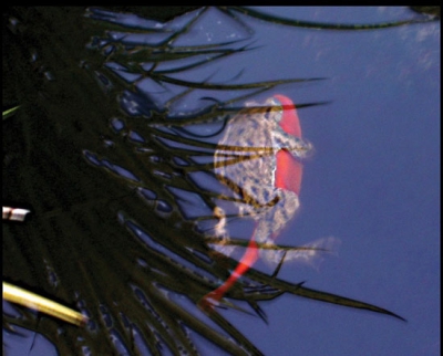 وكانت "سويدى" البالغة من العمر 70 عاماً، قد رمت ببعض الطعام إلى الأسماك الموجودة داخل البركة، لترى بعدها المنظر، وتقرر التقاط تلك الصور، حيث قالت "سويدى" التى تعمل كممرضة للمتقاعدين والجدة لأربعة أحفاد: "رأيت الضفدع يركب على ظهر إحدى الأسماك، فاعتقدت أنه أمر غير عادى ومضحك جداً، فقمت بتصويره".