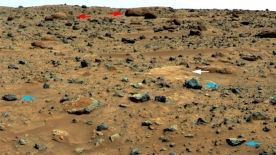 ![]() اكتشف احد الفلكيين الهواة في الصور التي التقطتها الأجهزة الفضائية للكوكب الأحمر، تمثالا لرأس انسان، لم ينتبه له أحد سابقا. الصور المقصودة هنا، هي تلك التي التقطها الروبوت Sojourner ضمن البعثة Pathfinder عام 1997 . اكتشف هذه الصورة قبل أيام سكوت وارينغ وهو أحد الباحثين عن دلائل وجود حياة خارج كوكبنا. يقول وارينغ، انه مولع بالصور التي توضع عليها سهام تشير الى نقاط محددة، وهذه المرة انتبهت الى سهم معين في الصورة، يشير الى رأس كأنه سقط من تمثال انسان ما. والسهام في الصورة يضعها خبراء الوكالات الفضائية لتبيان اختلاف طبيعة الأحجار المختلفة الموجودة على السطح، والتي تعطي بعض المعلومات عن المناخ والتكوين الجيولوجي للكوكب.