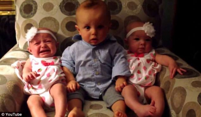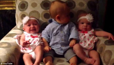 ![]() نشرت صحيفة "ديلي ميل" فيديو مضحكًا، لطفل صغير وهو يجلس في وسط أختيه التوأم.