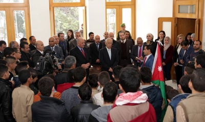 وكان أمين عام الديوان الملكي يوسف حسن العيسوي رحب بالطلبة في بيت الأردنيين ودعاهم لأن يكونوا على قدر المسؤولية، وأن يكون لهم إسهامات في بناء الأردن الذي نفتخر جميعا بالانتماء إليه ولقيادته الهاشمية الحكيمة التي قدمت الكثير للأردن وأمته العربية والاسلامية.