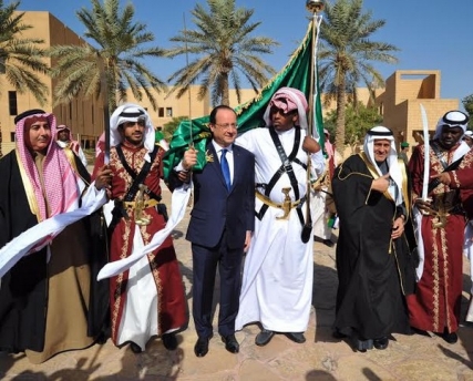 الرئيس الفرنسي يطلع على مراحل تأسيس السعودية في قصر المصمك يشاهد فيلماً عن استرداد الرياض ويؤدّى العرضة السعودية