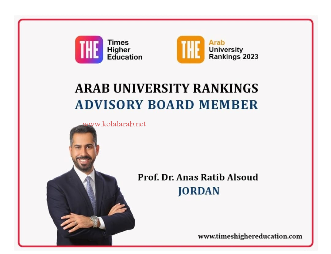 تعيين نائب رئيس جامعة عمان الأهلية عضواً في المجلس الاستشاري العربي لتصنيف التايمز العالمي
