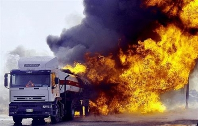 احتراق صهريج مشتقات بترولية وتفحم سائقه في العقبة