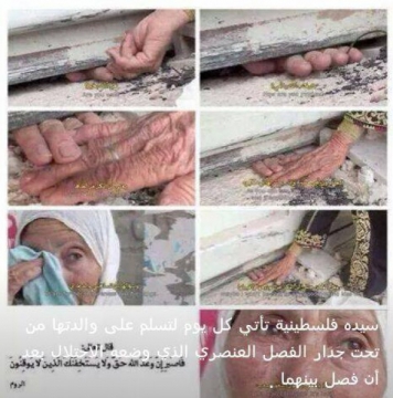 صورة.. سيدة فلسطينية تلتقي والدتها بطريقة مؤثرة بسبب جدار الفصل العنصري