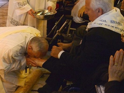 بابا الفاتيكان يغسل قدم مسلم ليبي وينحني ويقبّلها