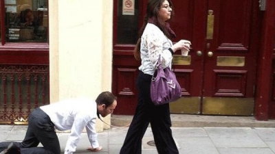 كشف لغز المرأة التي تجر "الرجل الكلب" في شوارع لندن