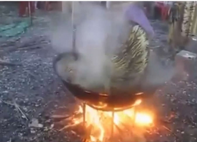 بالفيديو.. سبعيني تايلاندي "يطبخ" نفسه