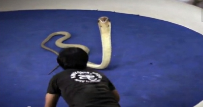 بالفيديو.. شاب يروِّض أخطر أفاعي العالم ويقبلها
