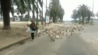 بالفيديو .. "هجوم" أرانب جائعة على سيدة