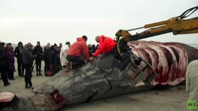بالفيديو.. تشريح حوتين من حيتان العنبر على الساحل في الدانمارك