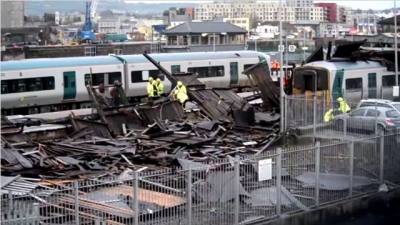 بالفيديو.. انهيار سقف احدى المباني بايرلندا نتيجة للطقس الصعب