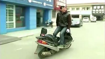 بالفيديو: صيني يقود دراجته النارية بطريقة خاصة