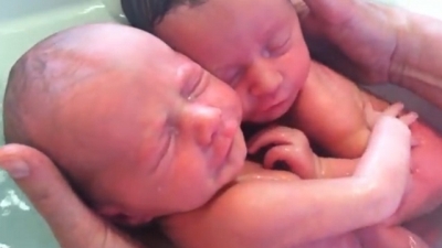 بالفيديو .. توأم يعانق أحدهما الآخر في الماء يجذب أكثر من 3.5 مليون في أسبوع