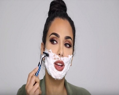 خبيرة تجميل عراقية تحلق ذقنها بشفرة الحلاقة (فيديو)