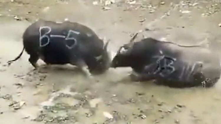 موت جاموسين في بداية العراك بينهما (فيديو)
