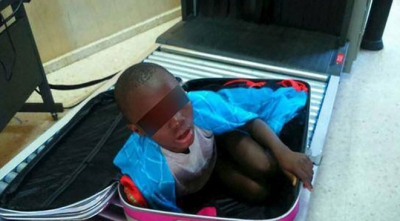 مغربية تنقل طفلا داخل حقيبتها