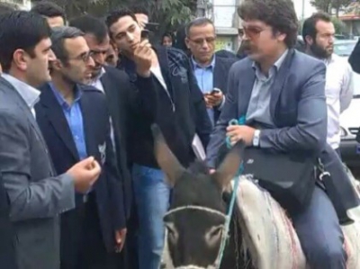 إيراني يسبدل السيارة بحمار لارتفاع أسعار البنزين