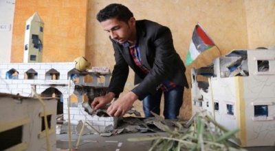 غزي يُشكل مجسمات أحياء غزة المدمرة بالحرب
