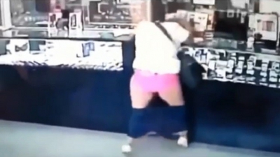 بالفيديو.. شابة تنفذ سطوا مسلحا و ( مشلحا ) في آن واحد