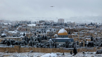 شاهد الثلوج والبرد تجتاح مدينة القدس المحتلة