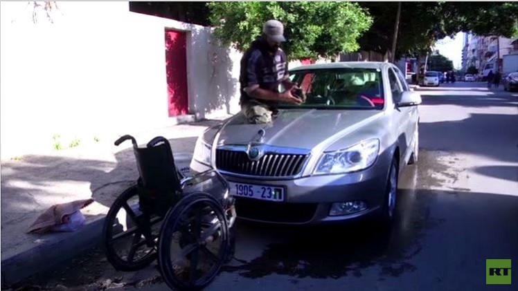 فلسطيني مبتور الساقين يغسل السيارات (فيديو)