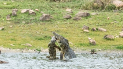بالفيديو.. تمساح يلتهم تمساحا آخر