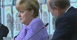 ميركل تحملق في بوتين بسبب نكتة جنسية .. فيديو