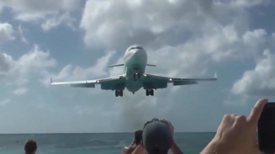 شاهد هبوط لا يصدق لطائرة KLM بوينغ 727 في جزيرة سانت مارتن بالكاريبي