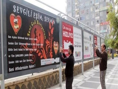 تركي يعتذر لزوجته من خلال لوحة إعلانية ضخمة