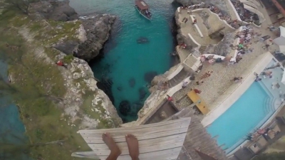 بالفيديو.. وكأنه يختار بين البحر والمسبح