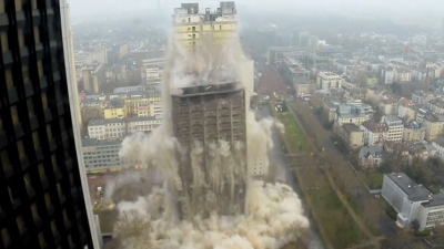 بالفيديو.. تفجير أعلى مبنى جامعي في أوروبا وانهياره في ثوانٍ