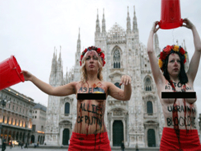 فتيات يتظاهرن عاريات الصدر ضد سياسات بوتين
