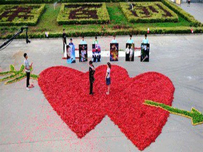 صيني يصنع قلبا من 100 ألف قرن فلفل أحمر ويهديه لحبيبته