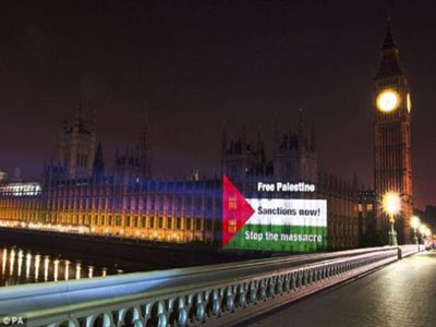 علم فلسطين يضيء البرلمان في بريطانيا