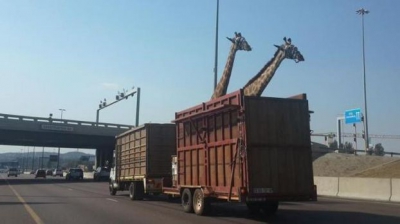 موت زرافة في شاحنة بعد ارتطام رأسها بجسر