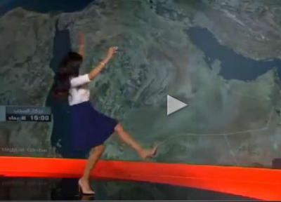 بالفيديو.. مذيعة فضائية العربية «تتزحلق» على الأرض خلال قراءة النشرة الجوية