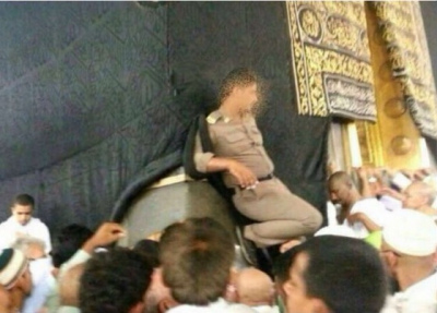 جدل بالسعودية بعد صورة لرجل أمن يضع حذاؤه على "الحجر الأسود"